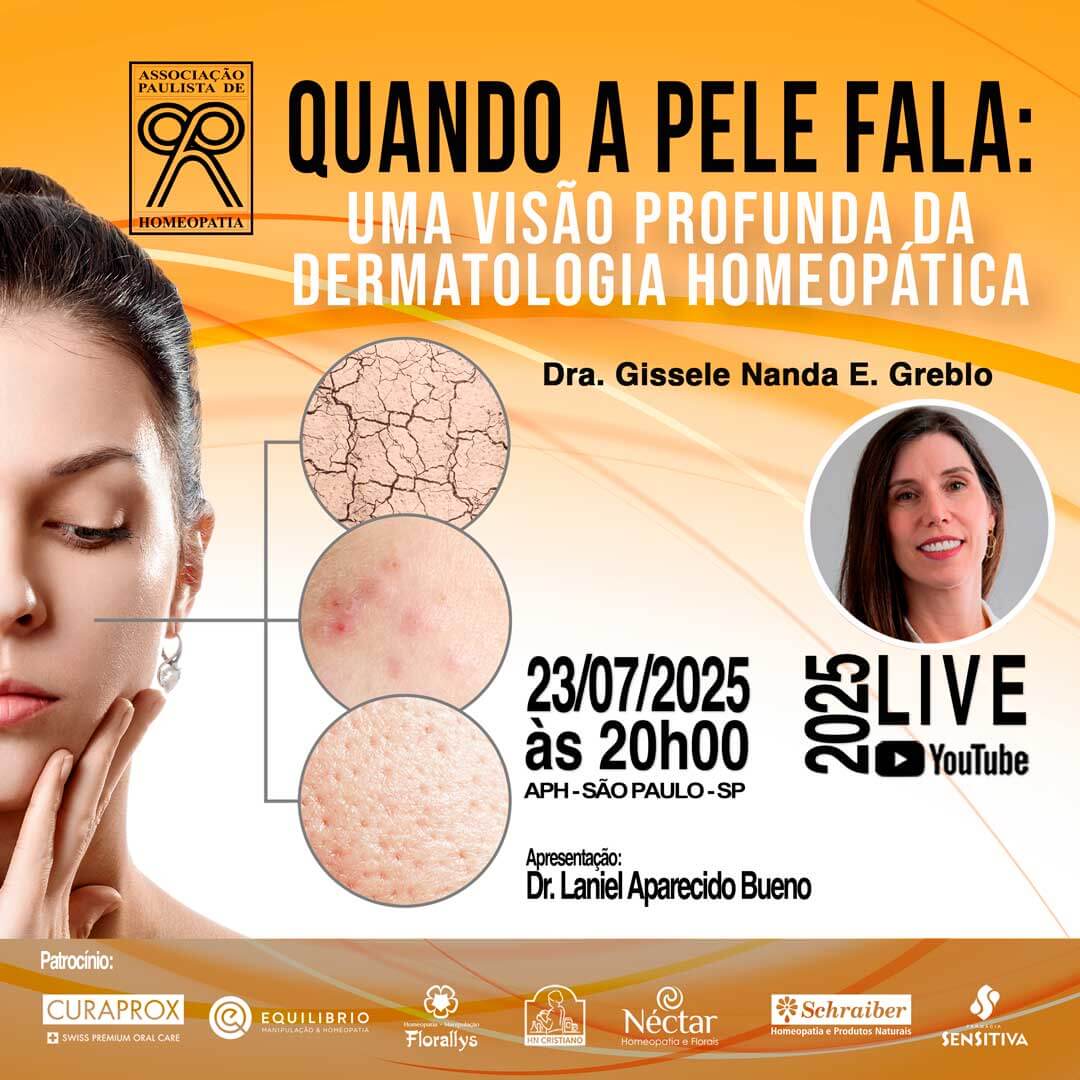 A Associação Paulista de Homeopatia convida você para uma live especial com a Dra. Gissele Nanda Encarnacion Greblo, médica dermatologista e homeopata, que nos conduzirá por uma jornada além da epiderme — rumo às mensagens mais profundas que a pele tenta nos comunicar.